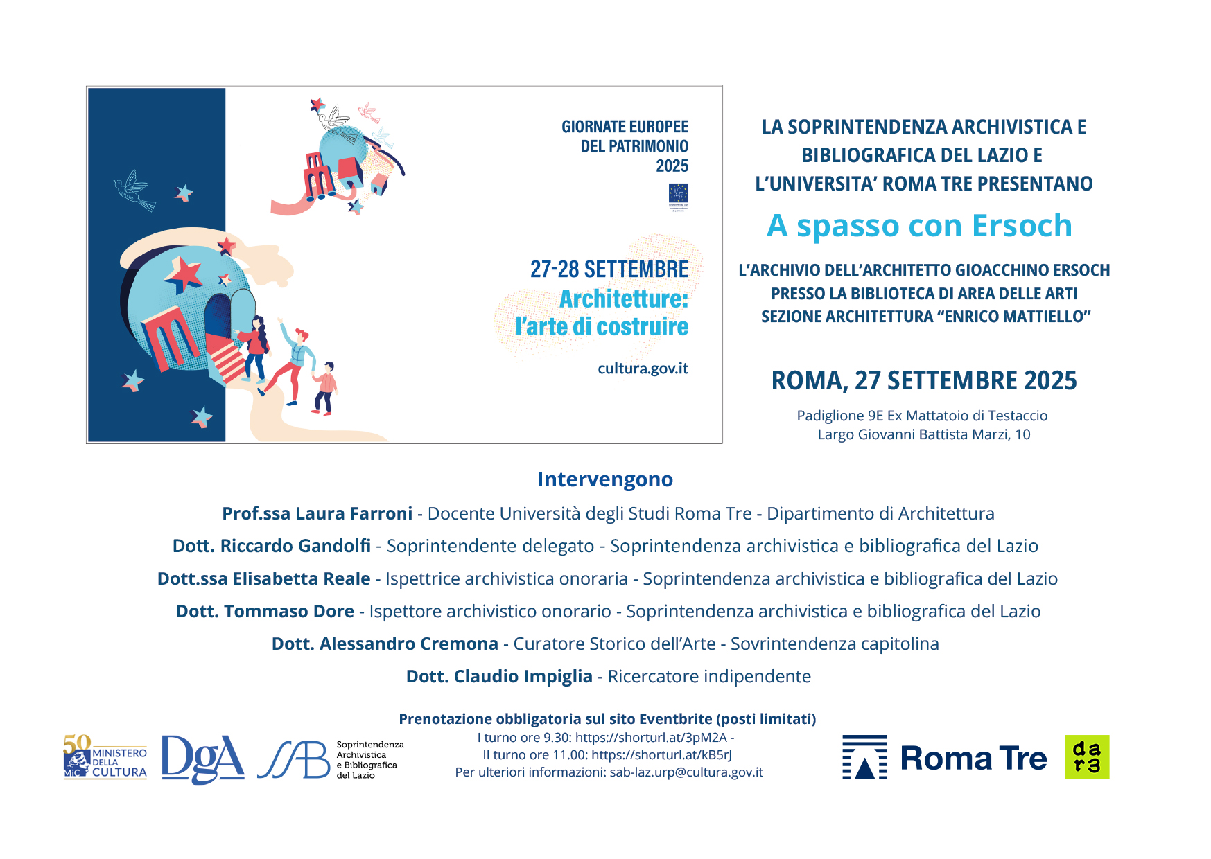 A cura della Soprintendenza archivistica e bibliografica del Lazio e del Dipartimento di Architettura dell’Università Roma Tre.